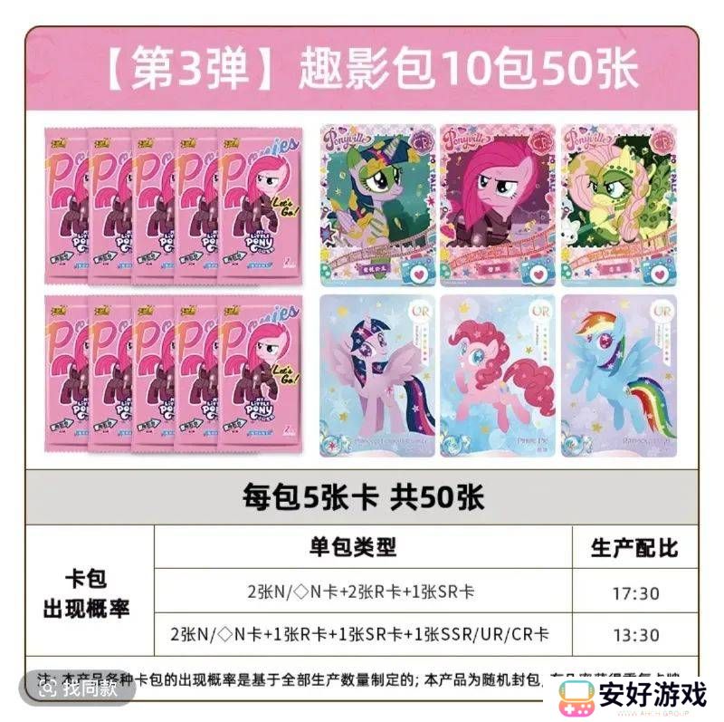 在拆卡市场上,卡片的稀有度成为了决定其价值的关键因素。以小马宝莉为例,卡片从低到高可分为16个等级,其中“UR”、“SP”等稀有卡面的价值更是高达上千元。这种巨大的价值差异,使得拆卡成为了一种充满刺激与风险的行为,也吸引了越来越多的消费者参与其中。