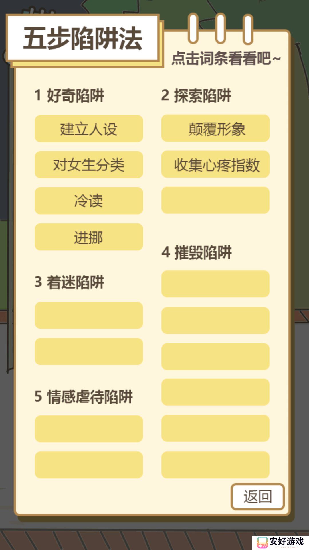 游戏的画面简洁清新,而在玩法上则非常贴近现实,让你看清那些所谓的PUA搭讪艺术家。