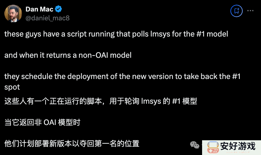 然而,尽管4o的表现亮眼,但网友们对于OpenAI迟迟未推出o1满血版仍表示不满。一些网友在社交媒体上直言,希望OpenAI能够尽快放出o1,与近期备受瞩目的DeepSeek等模型进行正面较量。甚至有网友调侃称,OpenAI的更新策略似乎就是每当有其他模型登上榜首时,便迅速推出新版本夺回第一。