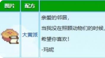 触发条件:达到7心之后,玛妮会寄一个大黄派食谱给你。
