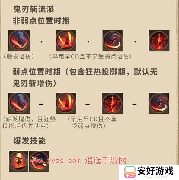3、鬼刃斩流派可以利用上一次使用技能所处的轮盘位置暂时变成弱点位置,可以在轮盘上设置多个弱点位置,需要规划好冷却时间,连续触发弱点打出伤害。