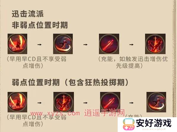 2、迅击流派本身的伤害就比较高,通过充能可以打出更高的爆发伤害。非爆发时间需要利用自身可以跳过两格轮盘位置的特点更快的触发弱点,同时也要注意洞悉弱点触发后迅击伤害的加成,提高伤害。