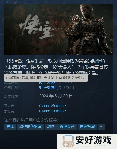 近期,国产游戏《黑神话:悟空》在Steam平台上的表现极为亮眼,吸引了大量玩家的关注与讨论。在短短三个月内,该游戏的评论数量已突破73万大关,并且好评率高达惊人的96%。这一成绩,即便是与已经上市两年有余、备受好评的《艾尔登法环》相比,也毫不逊色。《艾尔登法环》的评论数为71万条,好评率为92%,虽然同样出色,但在评论增长速度与好评率上,略逊于《黑神话:悟空》。