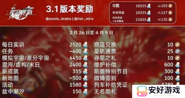当然了,除了新角色和新buff外,3.1版本也有很多值得参与的活动,特别是晨昏卷隐活动,它将在2月14日上线。这次活动的奖励可是超级丰厚的,包括500星琼和大量的遗器残骸,简直是氪金党的福音。如果你还在犹豫要不要参加,只能说赶紧的,错过了可就要等很久。