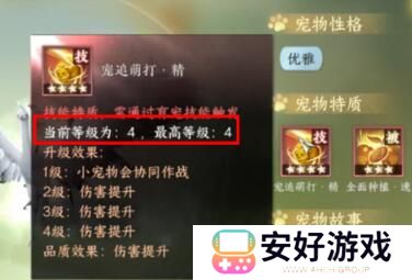 5、宠物的第一个技能加到4星,没到就换一只宠物升级。