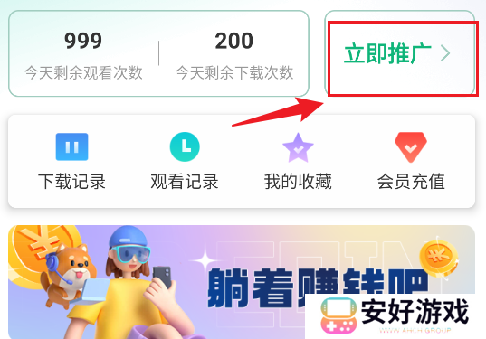 2、点击立即推广,别人通过你发的邀请码进行注册即可免费获取观影特权。