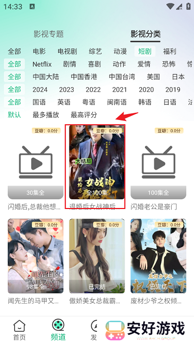1、进入APP主界面,找到自己喜欢看的视频,拿我喜欢看的短剧举例;