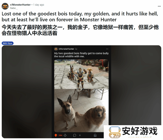 对于Babo__而言,虽然他已经失去了现实中的一只爱犬,但在《怪物猎人》的世界里,那份陪伴与爱却永远不会消失。同样地,对于每一个热爱游戏的玩家来说,游戏不仅是他们探索未知、挑战自我的舞台,更是他们珍藏记忆、寄托情感的避风港。