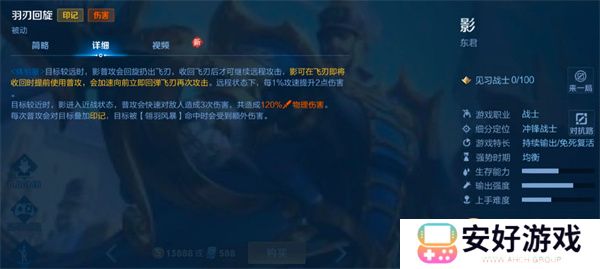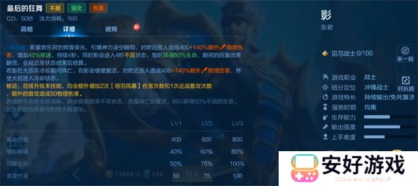 2、若影在大招非冷却期间阵亡,则影会缓缓复活,对附近敌人造成400+140%额外,物理伤害,并使大招进入冷却状态。