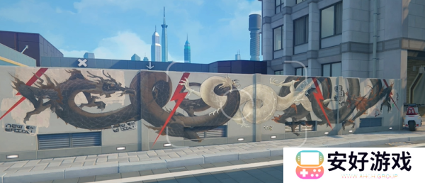 2、这个线索指向的位置是光映广场地图中如下图所示,这个有龙涂鸦的墙,对着墙拍照后就可以回去找山姆了。