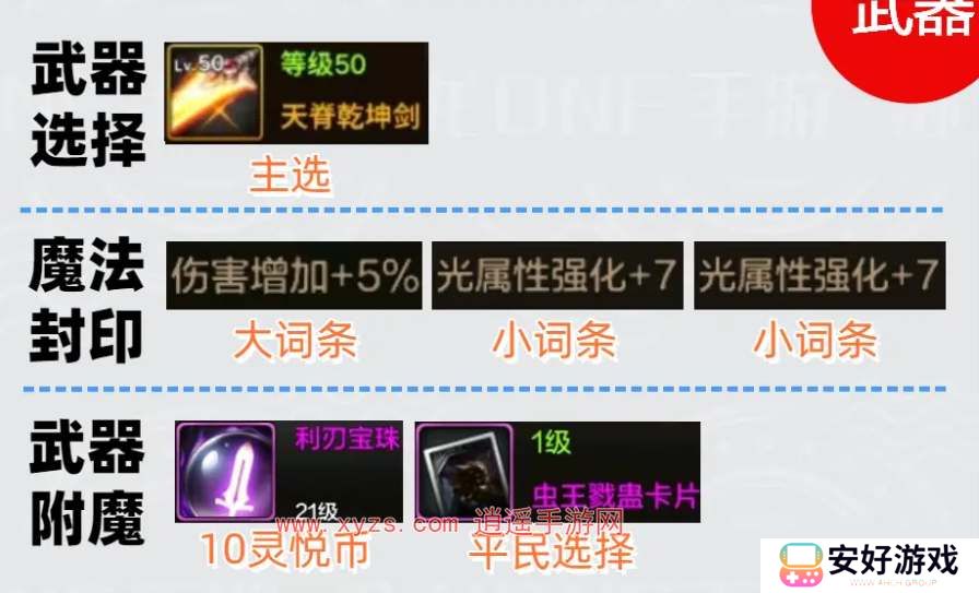 武器附魔:利刃宝珠/虫王戮蛊卡片。