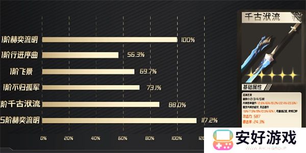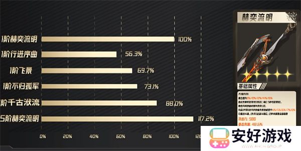 2、五星武器 千古洑流,这个武器词条也有暴击率加成,实用性仅次于专武。常驻武器抽取和养成成本都比专武低。