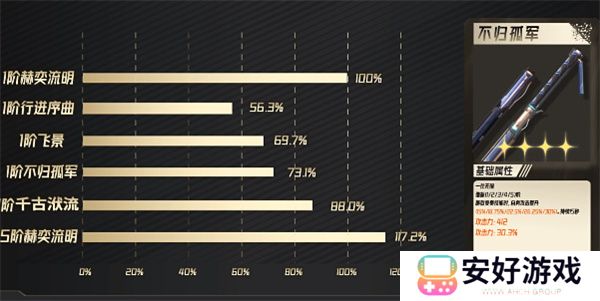 3、四星武器 不归孤军,最优四星选择,平民玩家首选,虽然综合加成比不上五星,但是性价比最高。