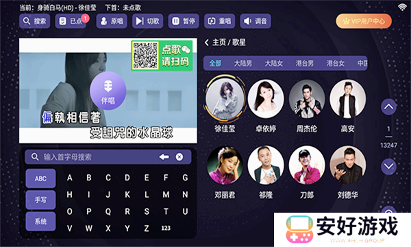 2、这里和ktv里的点歌系统一样,你可以尽情的点歌,支持不同的检索方式,还有超多的个性化设置。