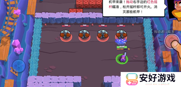 3、拖动右轮盘则可以让自己的角色进行攻击。