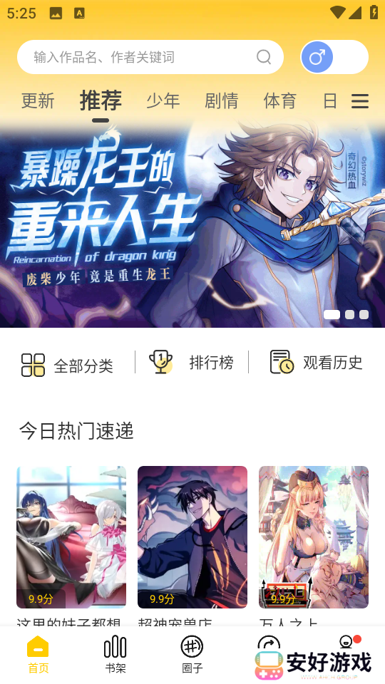 首先,安装好之后进入软件的主界面,你会看到热门的、最新的漫画作品都展示在这里。