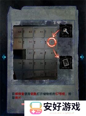 17、用钥匙打开接待室的57号储物柜,拾取其中的照片。