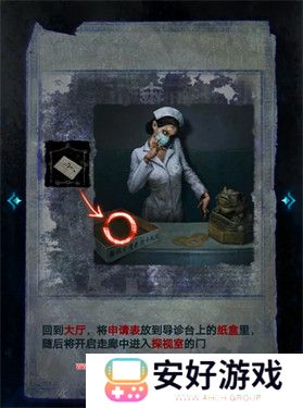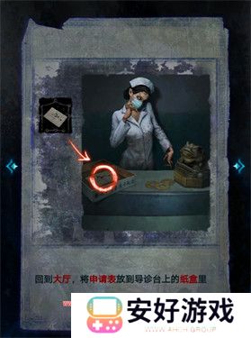 10、写完申请表后,将表放到前台的纸盒中,随后护士人偶就会为玩家开启走廊中进入探视室的门。