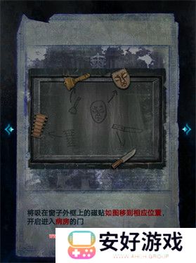 19、之后将吸在窗子外框上的磁贴移动到图中的位置,就可以开启病房的门。