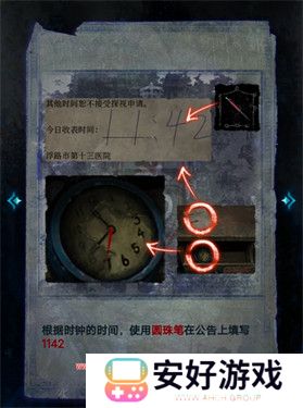 9、此时玩家需要根据时钟的时间来填写正确的收表时间,圆珠笔在之前的前台处拾取。