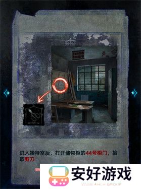 6、进入接待室后,打开44号储物柜,拾取其中的剪刀。